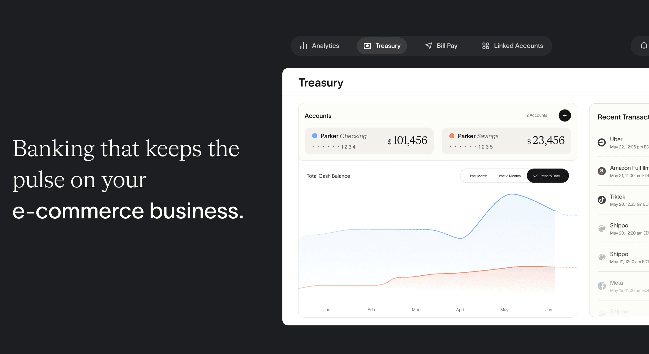 With banking services through Parker, you gain access to unparalleled financial insights and an experience custom-built for ecommerce: