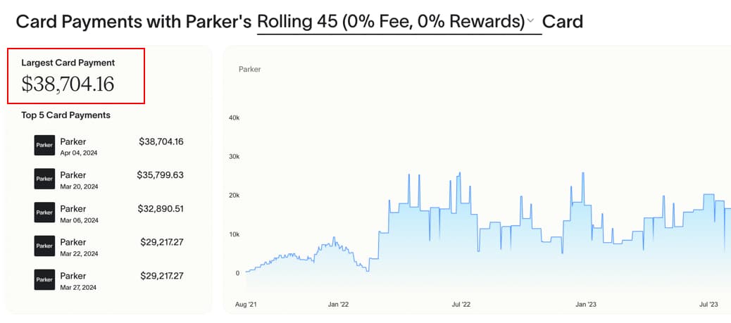 With rolling terms, you're always getting full duration on every swipe. Payments are just the small, incremental daily charges from X days ago (45 days in this example) rather than one big statement bill. So you never really pay down the full balance!